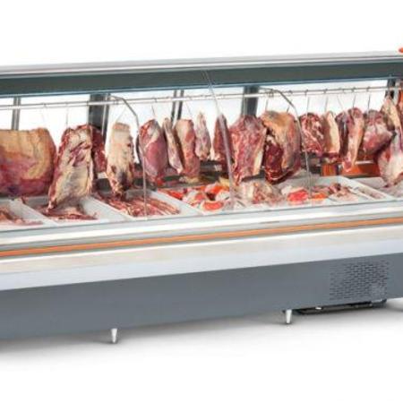 - Marca Refrimate - Origen Brasil - Utilizado para exponer carnes refrigeradas a una temperatura variable de 0 a 10ºC. - Frío estático (evaporador en la parte superior y la placa de frío en la parte inferior). - Bandejas en acero inoxidable. - Iluminación fluorescente. - Depósito inferior refrigerado. - Medidas: Fte 2.00 x Prof. 920 - Altura 1,49 mts.
