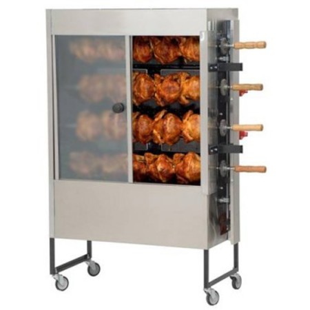 Spiedo Con capacidad para 20 pollos. Construida externamente en acero inoxidable. Internamente en acero recubierto con pintura epoxi. Con quemadores de infrarrojo.